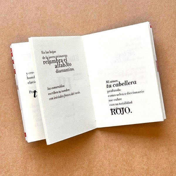 Libro-objeto de poesía visual que interpreta y honra esta oda clásica de Pablo Neruda. Las palabras se vuelven eco en el espacio tangible del libro: interpelan, reflexionan y, muchas veces, incomodan. Es una pieza donde tipografía, poesía y materialidad dialogan para convertir el poema en experiencia visual y corporal.