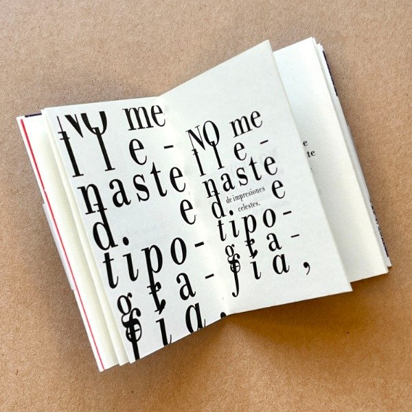 Libro-objeto de poesía visual que interpreta y honra esta oda clásica de Pablo Neruda. Las palabras se vuelven eco en el espacio tangible del libro: interpelan, reflexionan y, muchas veces, incomodan. Es una pieza donde tipografía, poesía y materialidad dialogan para convertir el poema en experiencia visual y corporal.