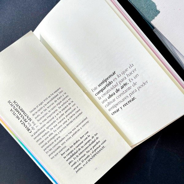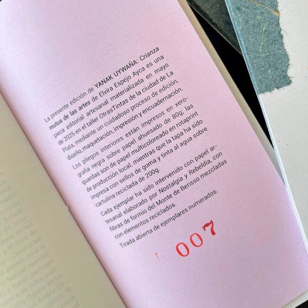Cada ejemplar está intervenido con papel artesanal elaborado por Nostalgia y Rebeldía, con fibras de formio del monte de Berisso.