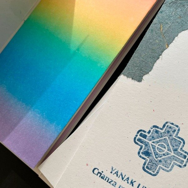 Formato: 11 x 21 cm | 32 páginas desplegables | Tapas en cartulina reciclada de 180 g impresas en sellografía con tinta al agua | guardas multicoloreadas en rotaprint de producción local + papel ahuesado de 80g – impresión xerográfica | Encuadernación cosida flexible. Edición abierta de ejemplares numerados.